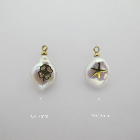 2 pcs Pendentif D'eau Douce en inox doré